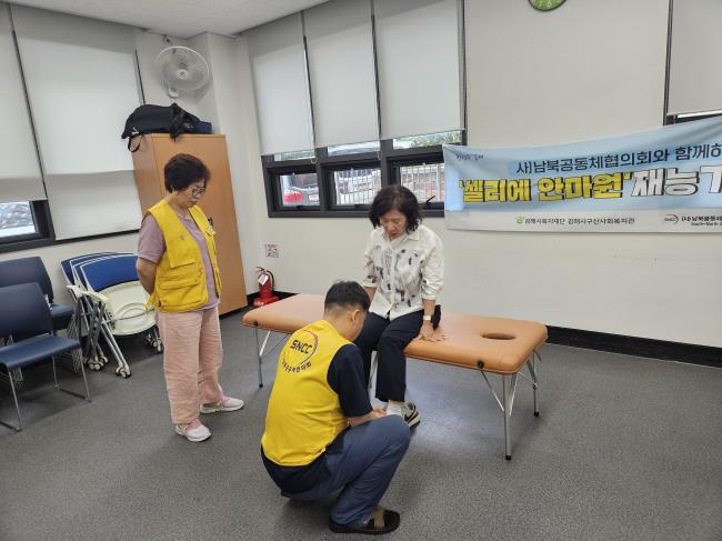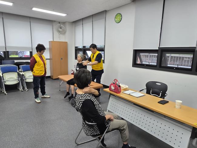 - 10월 건강상담 및 안마봉사 실시 - '셀리에안마원' 재능기부로 복지관 이용자들에게 건강상담 및 안마봉사를 월1회 실시하고 있습니다. 수고해주신 셀리에안마원 자원봉사자에게도 감사인사 드립니다. ▶ 일 시: 2025. 10. 15.(수) 14:00~16:00